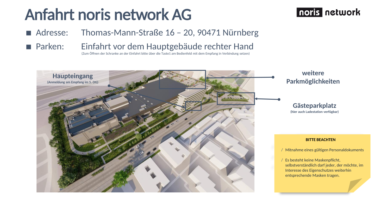 We will meet at noris network AG: Thomas-Mann-Strasse 16-20, 90471 Nuremberg.