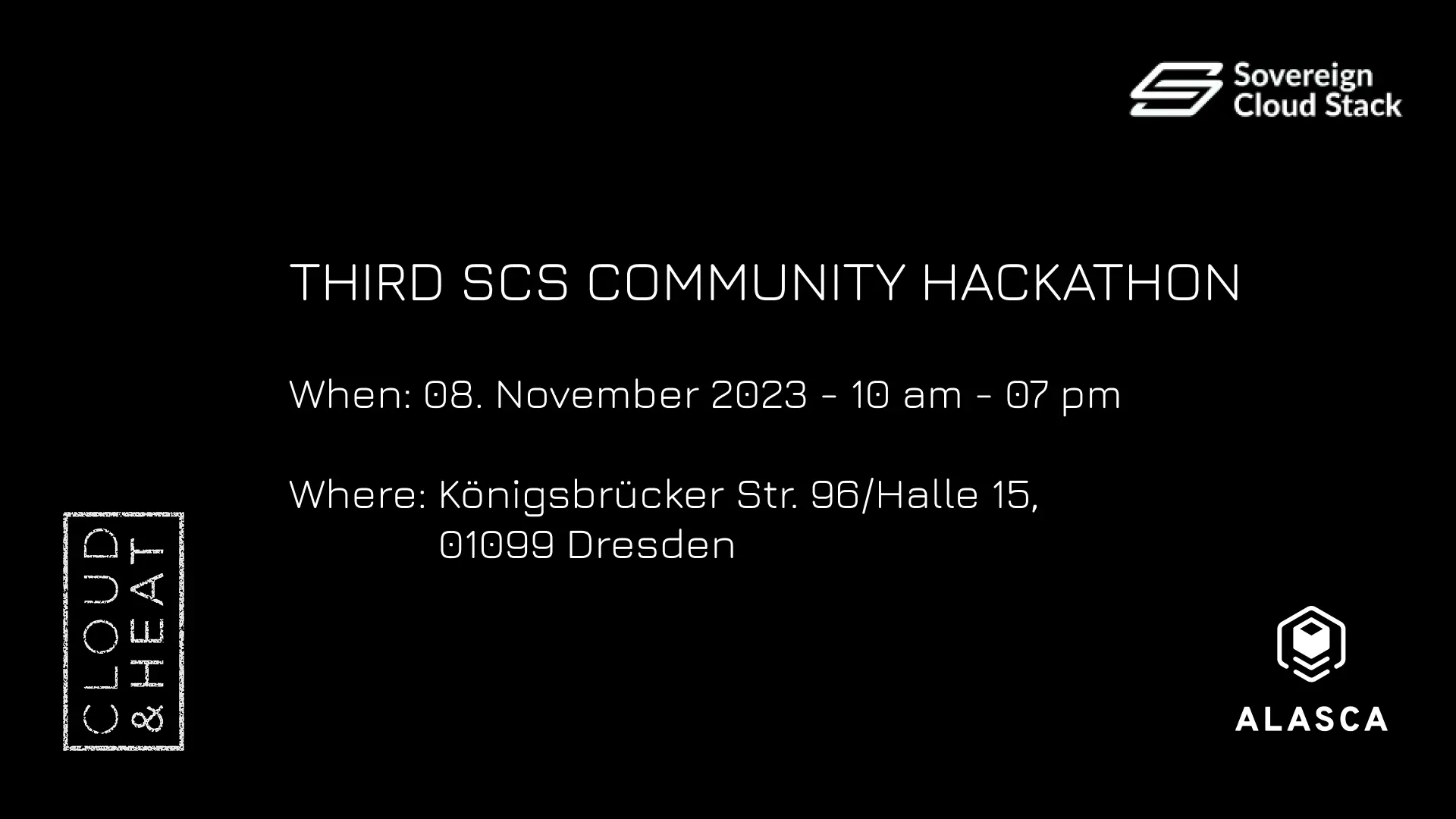 we invite you to our third big Community Hackathon in Dresden. With great support from CLOUD&HEAT and the ALASCA - Association for Operational Open Cloud Infrastructures e.V. this will be again a huge blast!